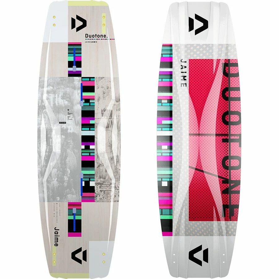 There aren’t many products in this sport that can lay claim to a revolution and a lineage going back over 15 years. The Jaime is one such product; the original model pioneered the wood core snowboard style construction that was quickly adopted and is the only technique used to build twin tips today. Over the years, the Jaime has been the flagship freestyle/freeride board for Duotone, aimed at the rider who wants performance that is easy to access combined with a comfortable ride that is second to none. The medium flex and tuned rocker line combine to offer a smooth ride in choppy waters, while the unique Double Diffusor Bottom helps the board pop and smooth out the landings. The Absorption Flex Tips provide plenty of grip and soften hard landings for those more technical tricks. Thanks to the Carbon Web, the ride on the Jaime is dynamic and engaging, it’s a fun board no matter the water conditions, and the more you engage the rail, the more feedback and performance you get back. The rail has been designed to fly upwind and offer maximum grip when you pop; riders will be rewarded with impressive airtime every time they load up for take-off, the right tool for breaking height records and smashing mega loops like Lasse Walker at the King of the Air. Ride like a legend with this incredible board on your feet; the legacy and lineage are testament to the board’s capabilities; all you have to do is unleash them!